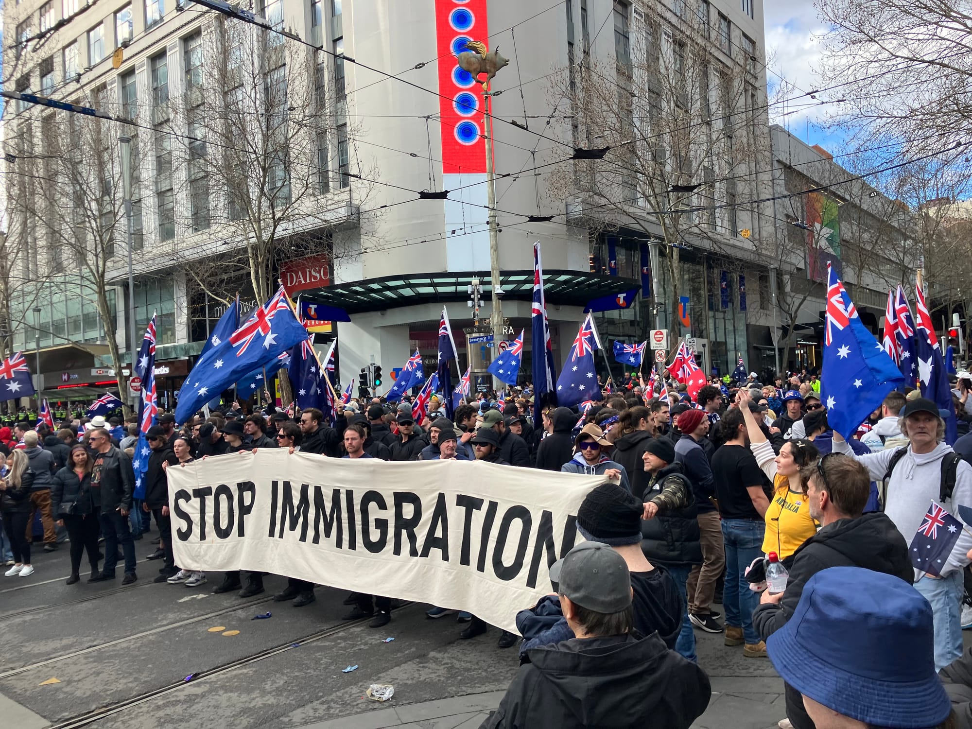 Last Sunday (31 August 2025) I attended the counter protest against the anti-immigration rally in Melbourne that involved the neo-Nazi organisation, the National Socialist Network. Due to me not wearing any identifying clothing, and being white, once the police had dispersed us, I was able to move among the anti-immigration protesters unhindered.