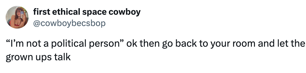 "I don't follow politics, I don't watch / listen to the news."